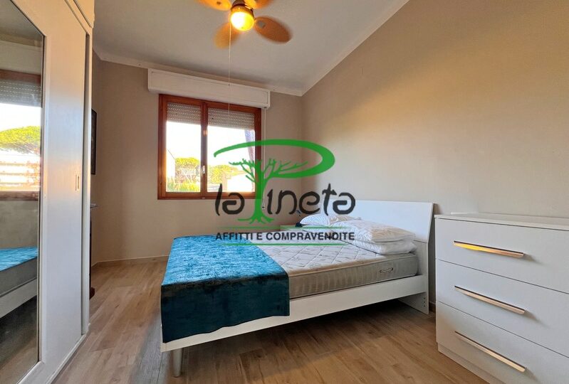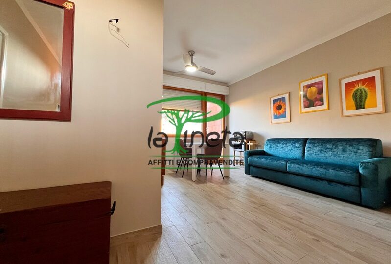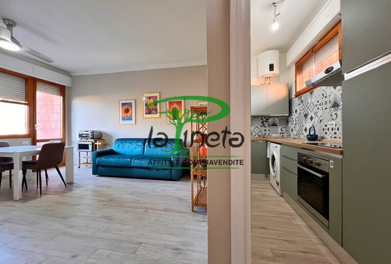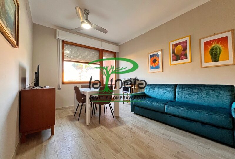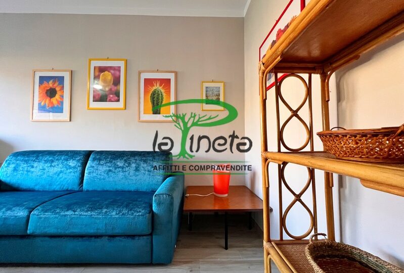 Proponiamo bilocale ristrutturato in Via dello scorfano, al primo piano con ascensore e distante 200 metri dall’accesso alla spiaggia. Composto di ampio soggiorno con divano letto, balcone, cucina ad induzione, camera matrimoniale e bagno con doccia. tv lavatrice e ventola per il ricircolo di aria. Ampia area di ristoro nella corte del condominio