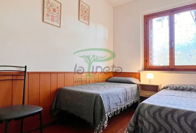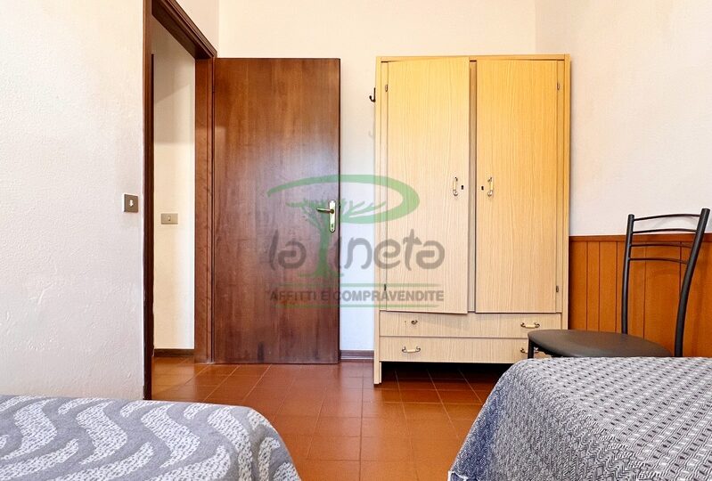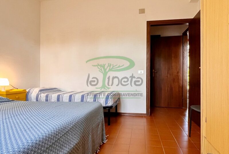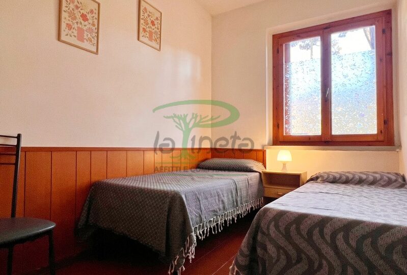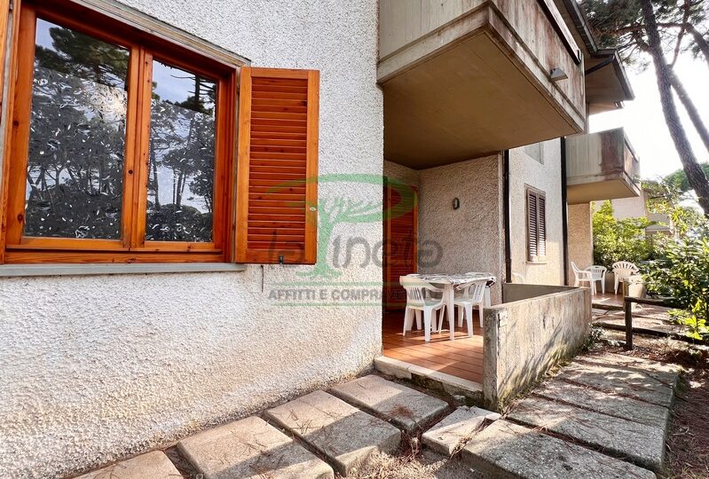 Trilocale piano terra con giardino, soggiorno con divano pronto letto, angolo cottura, camera con 3 posti e camera con due lettini singoli, bagno con doccia. tv, lavatrice, parcheggio. 350 metri dalla spiaggia. No Biancheria.