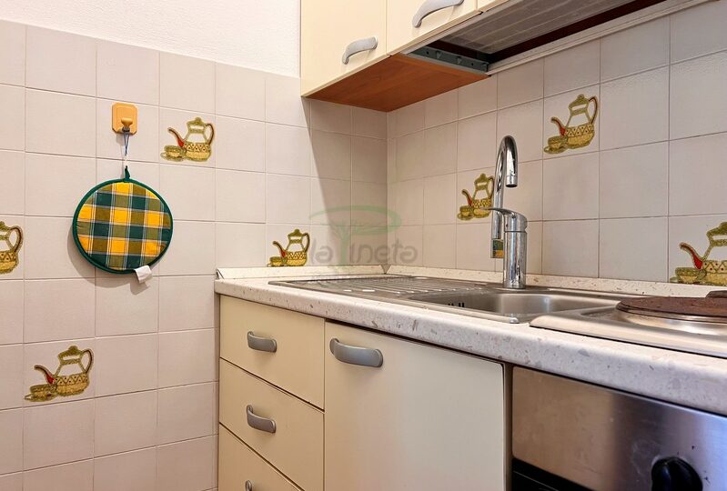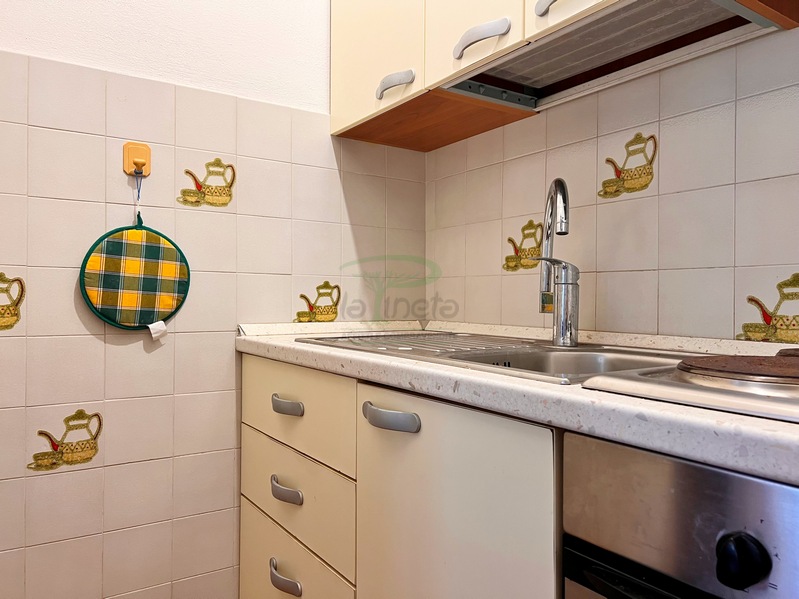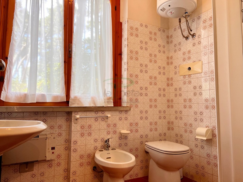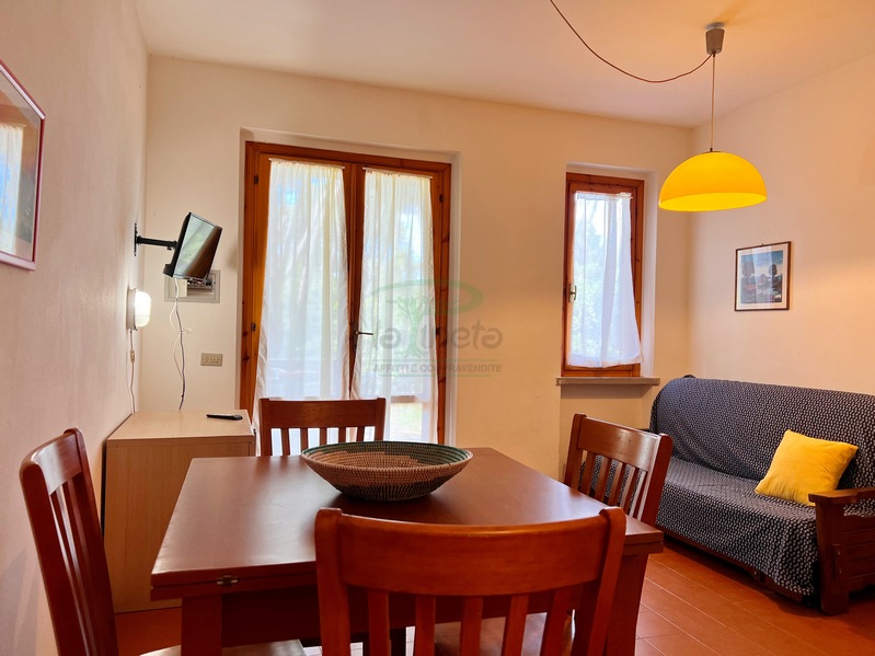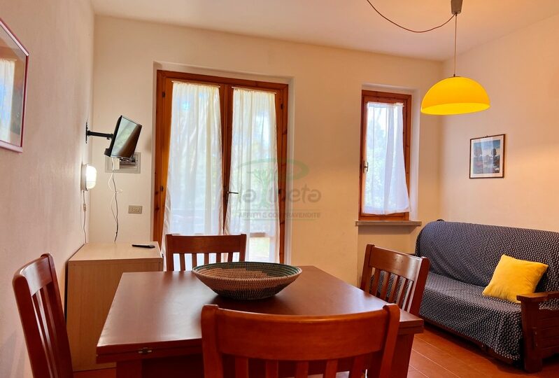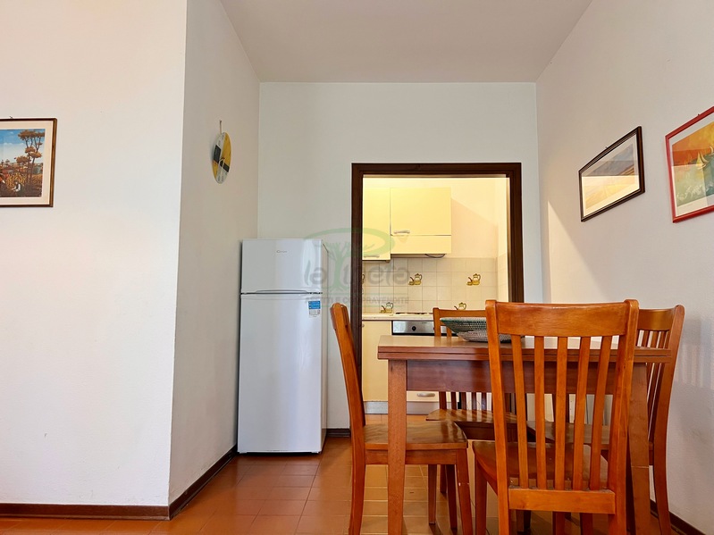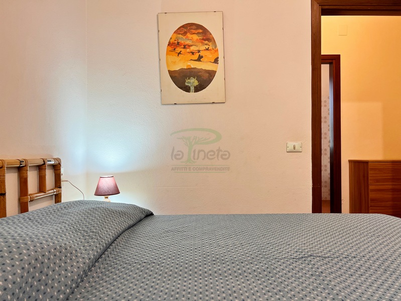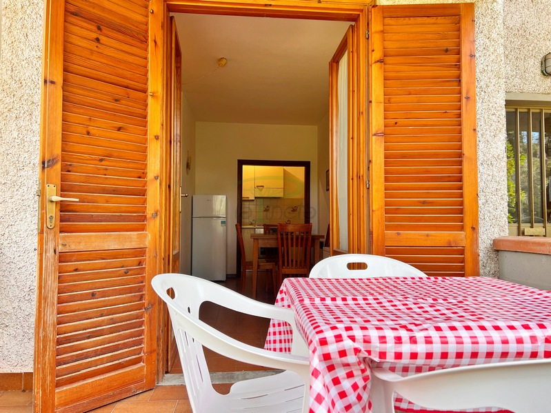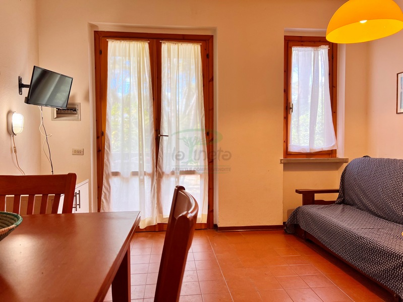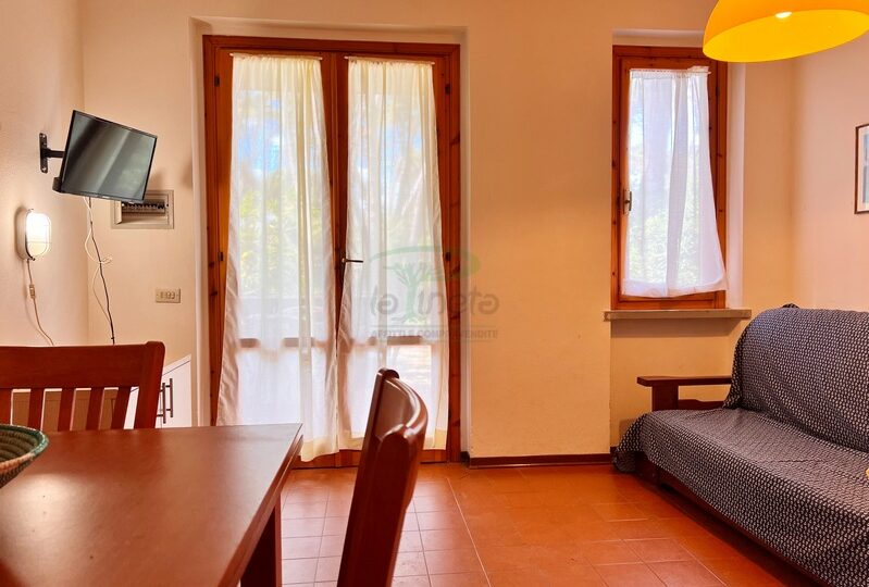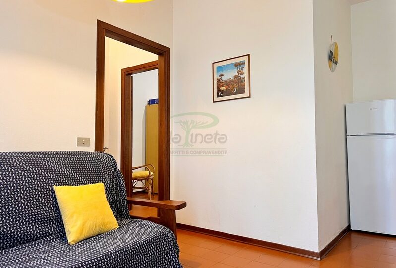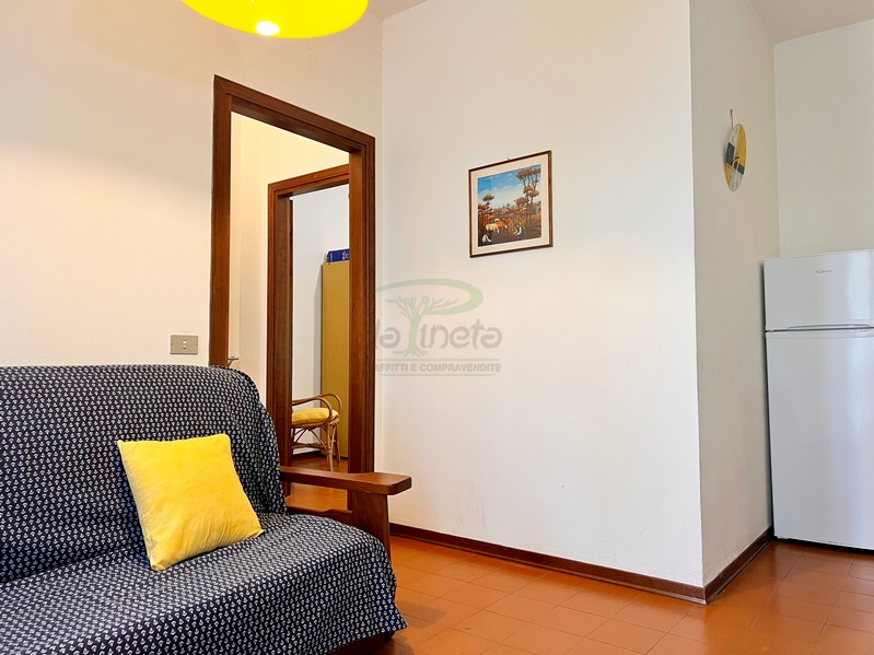 Bilocale piano terra a 550 metri dal primo accesso alla spiggia, soggiorno con divano letto, angolo cottura, camera matrimoniale e bagno con doccia. tv e lavatrice. No Biancheria