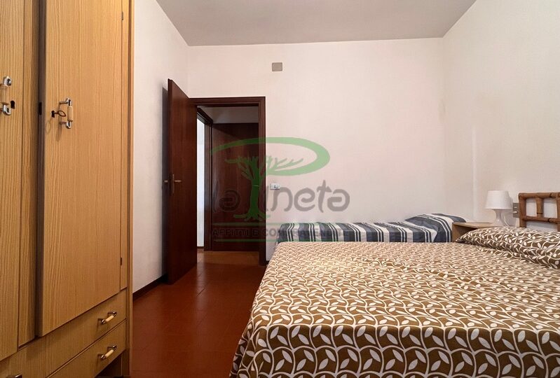 Bilocale piano terra a 350 metri dal primo accesso alla spiaggia. Soggiorno con divano letto, camera con letto matrimoniale e terzo lettino, bagno con doccia. Ampio terrazzo chiuso e coperto. tv lavatrice. No Biancheria.