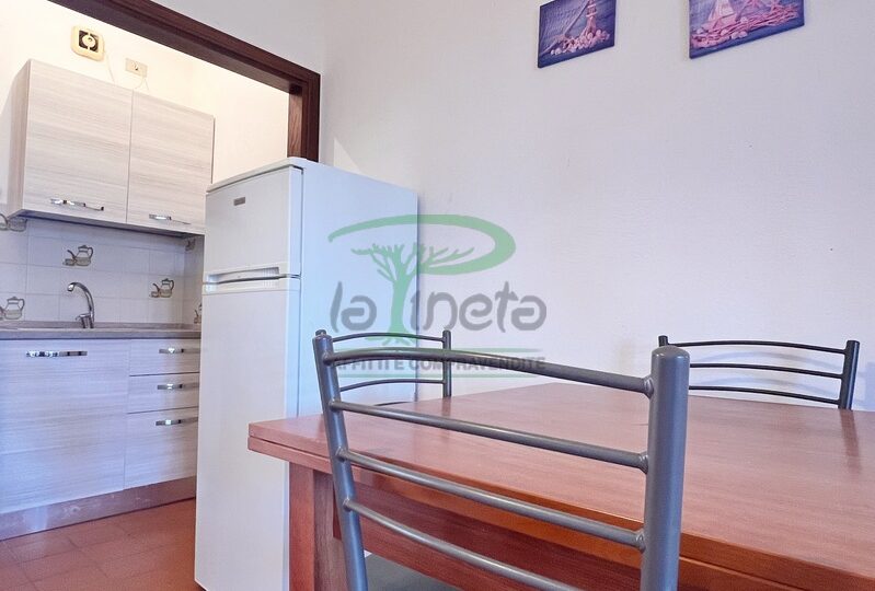 trilocale primo piano distante 350 metri dalla spiaggia, soggiorno con divano letto, angolo cottura, camera matrimoniale, camera doppia, bagno con doccia e terrazzo abitabile e coperto. tv, lavatrice. No Biancheria.