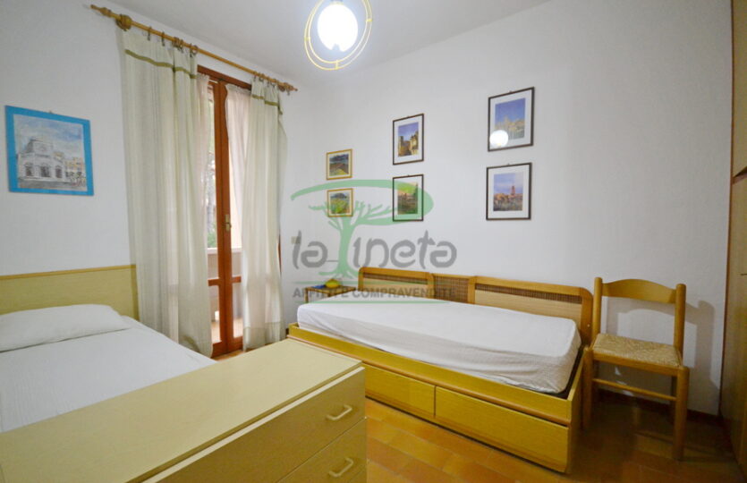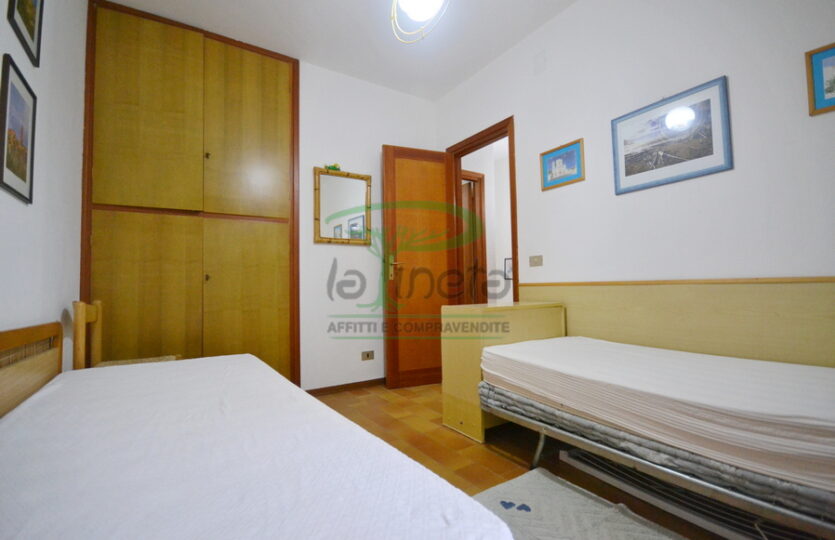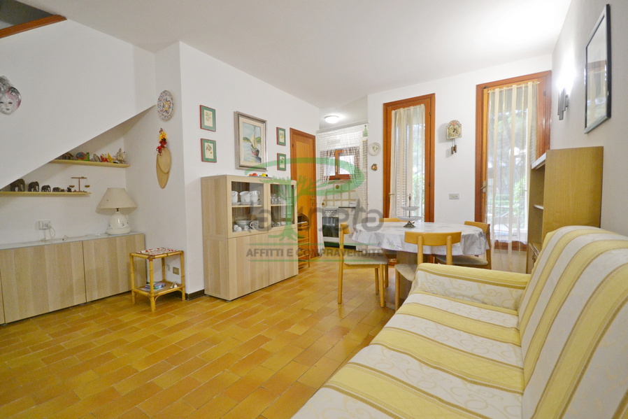 villetta a schiera distante 500 metri dalla spiaggia lato Lido Oasi, composta di giardino privato sul fronte, verandina, soggiorno con divano letto, angolo cottura e bagno di servizio, porta di accesso al posto auto. Al piano superiore, camera doppia, camera matrimoniale, bagno con doccia. tv, lavatrice. No Biancheria